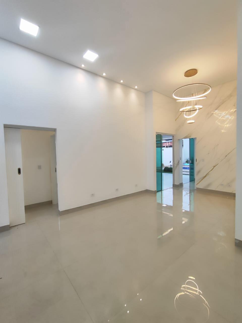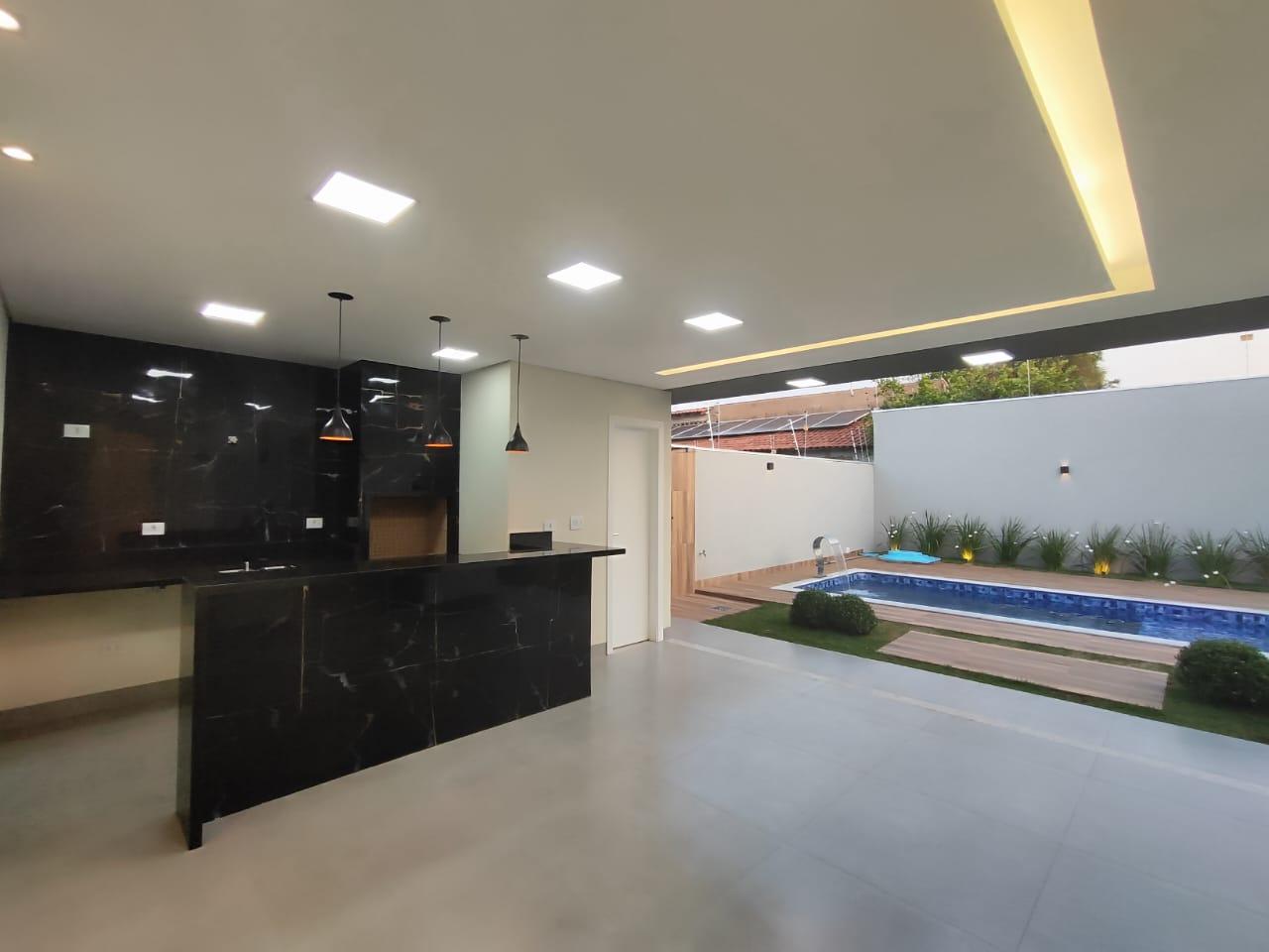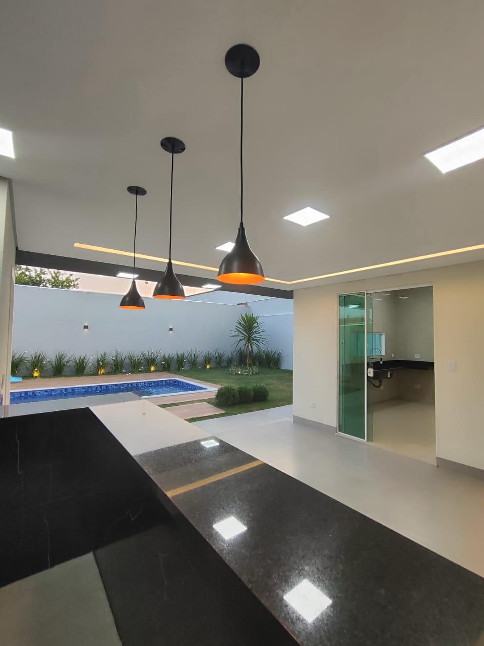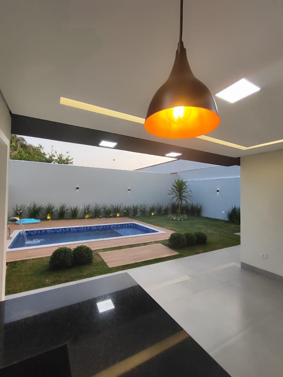 Composto de duas suítes , uma suíte master, closet, sala de estar, sala de jantar com pintura em marmorato e lustre. Casa com pé direito alto, piso porcelanato polido de primeira linha, lavanderia e toda área externa com porcelanato acetina de primeira linha e área de serviço. Na parte dos fundos, uma área gourmet com piscina e churrasqueira, lavabo. Possui quatro vagas de garagem duas coberta e duas não coberta, câmeras de segurança, portão elétrico, vídeo porteiro, cerca elétrica.
