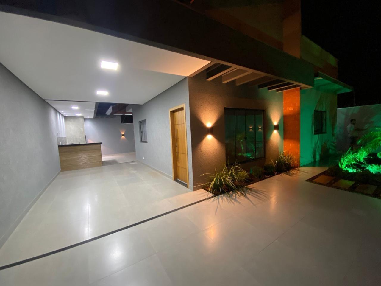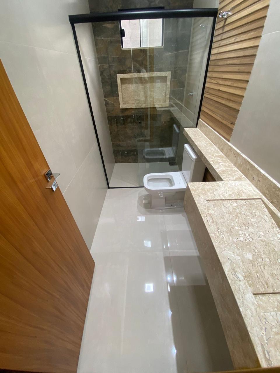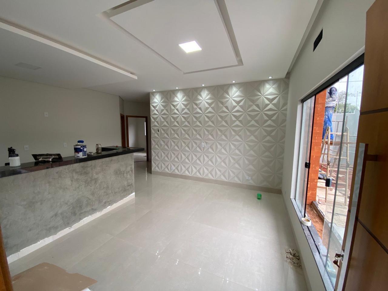Composta por sala de estar, cozinha americana, 3 quartos sendo 1 suíte, área gourmet com churrasqueira revestida em marmóreo planejadas e bancadas toda em granito preto, Lavanderia coberta, garagem para 3 carros. Pré instalação de ar condicionado em todos os cômodos, Gesso 3D na parede da sala. Laje rebaixo de gesso com LED em todos os cômodos e no Jardim, porcelanato polido interno, porcelanato acetinado externo, pedra granito São Gabriel e travertino, box nos banheiros, blindex com moldura preta moderna. Imóvel com cerca elétrica, concertina e interfone
