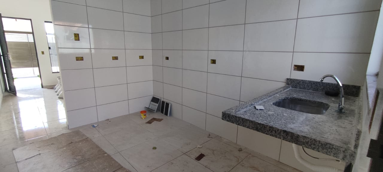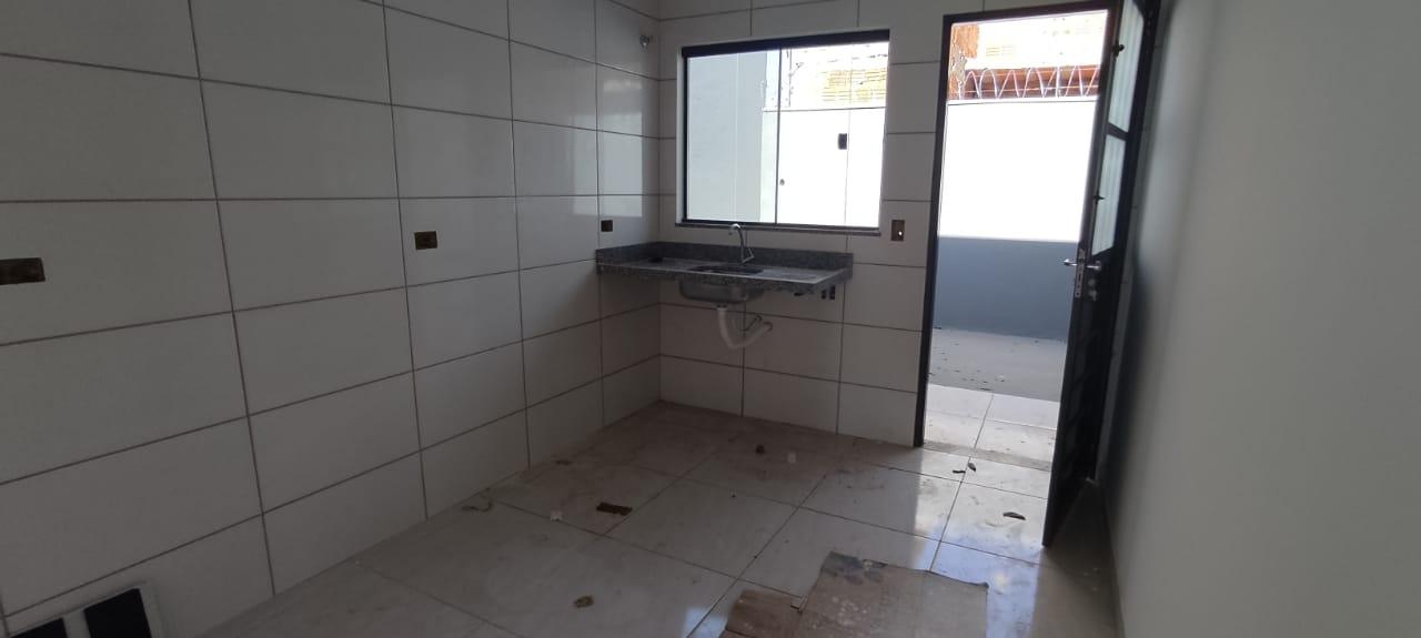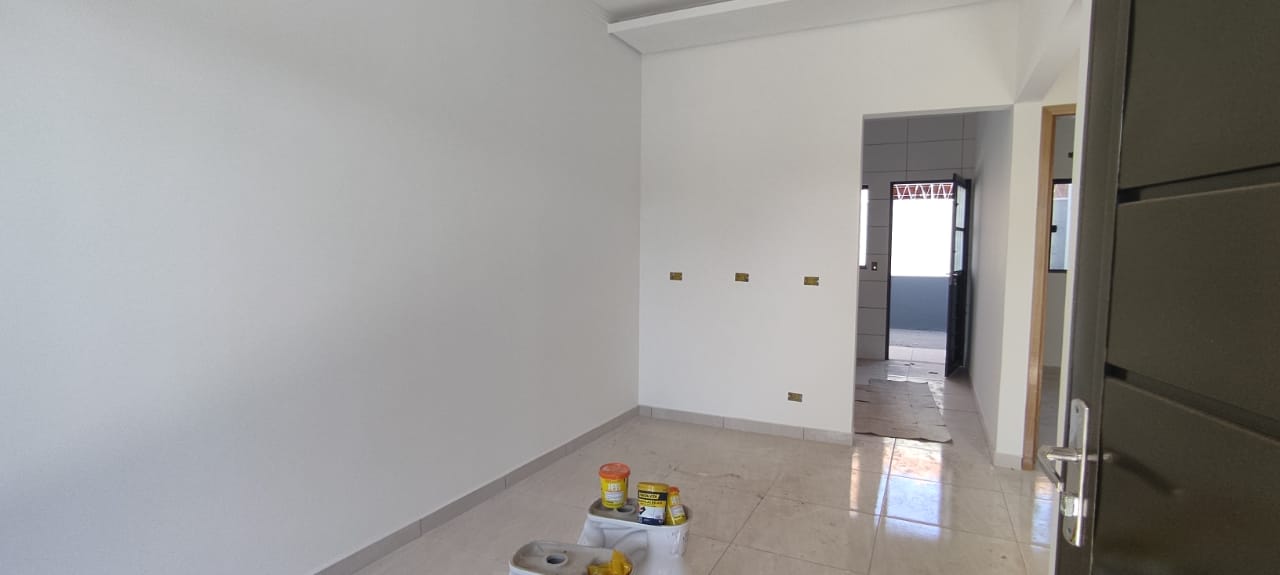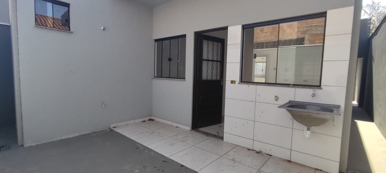 Imóvel contendo forro de laje com dois quartos sendo uma suíte, uma sala ampla, banheiro social e uma cozinha. Área de serviço coberta com duas vagas de garagem coberta.