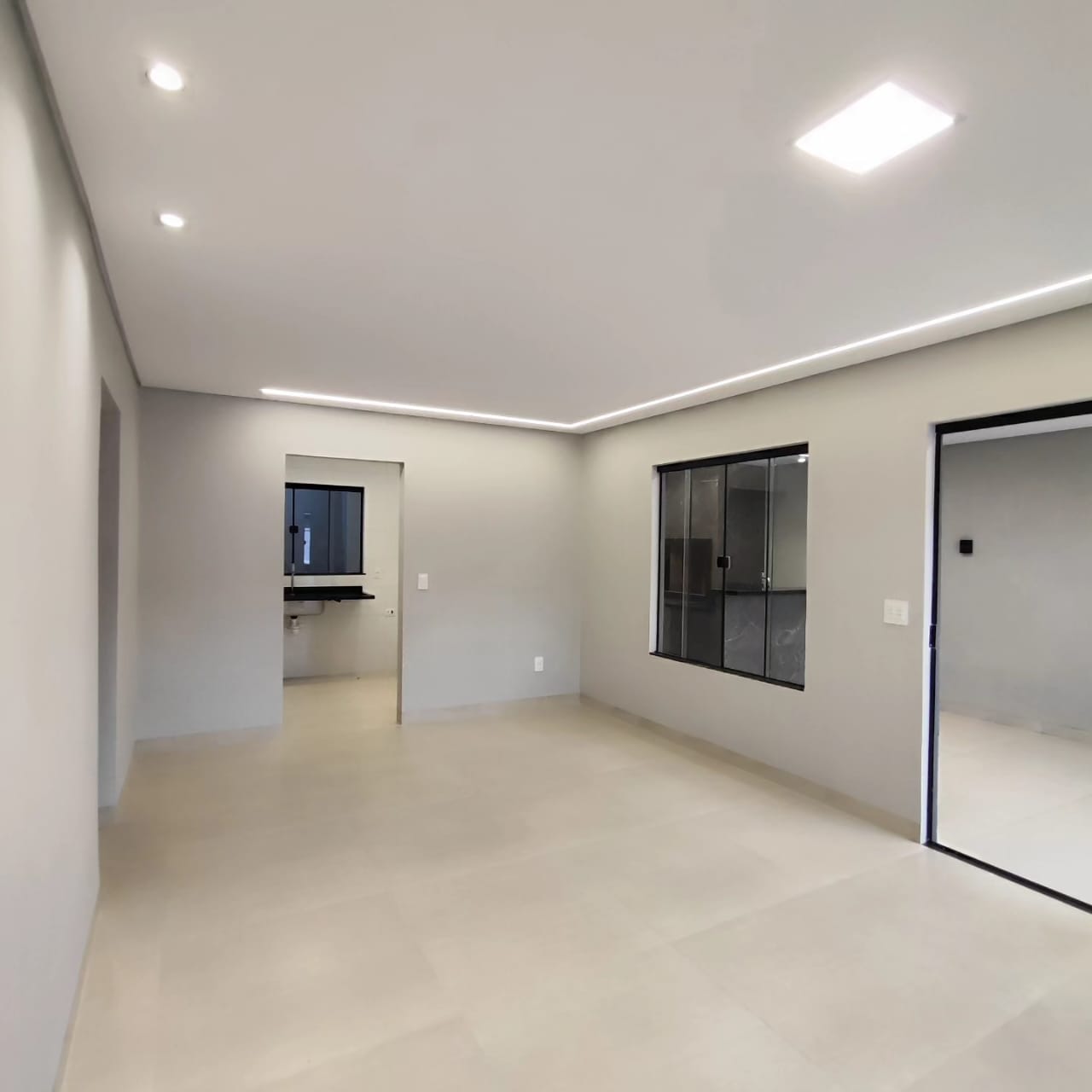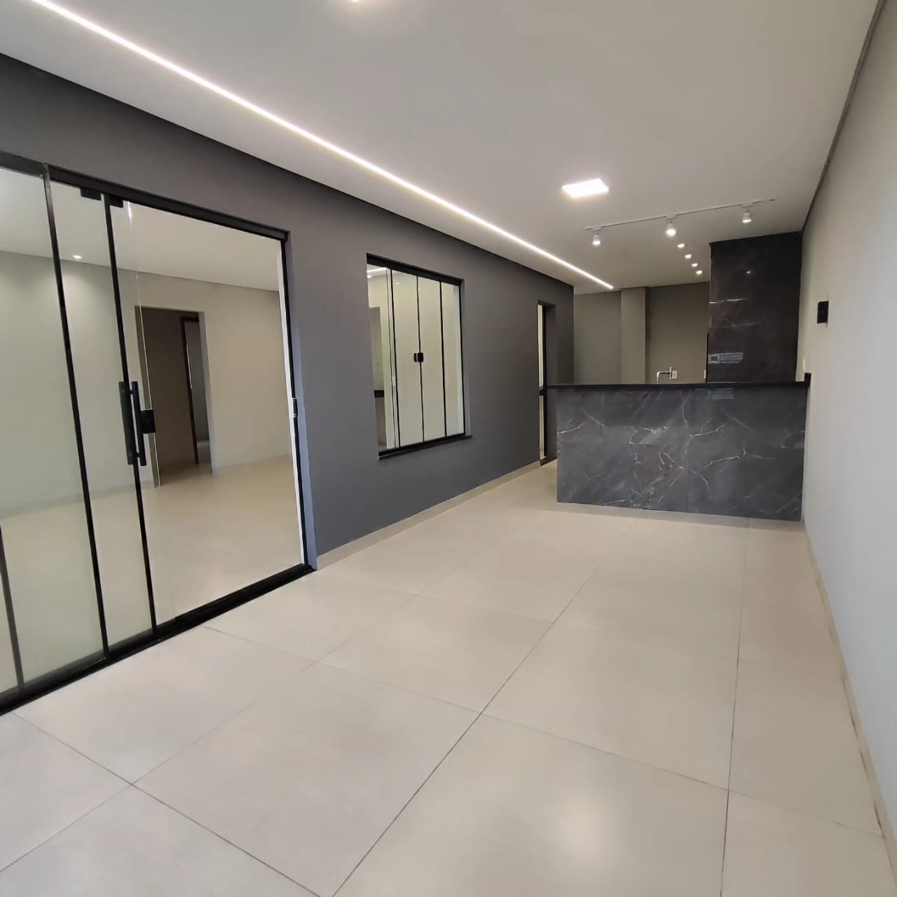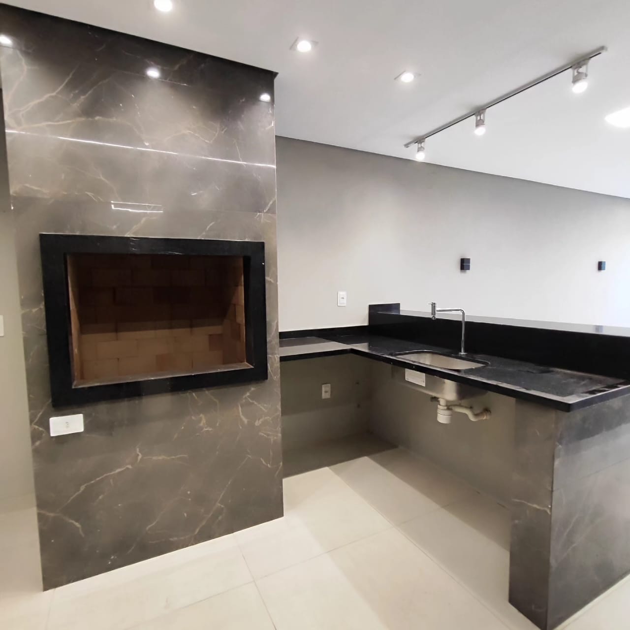 Composto de dois quartos sendo uma suíte, sala para dois ambientes, área gourmet, lavanderia coberta, cozinha, churrasqueira e garagem para 6 carros.