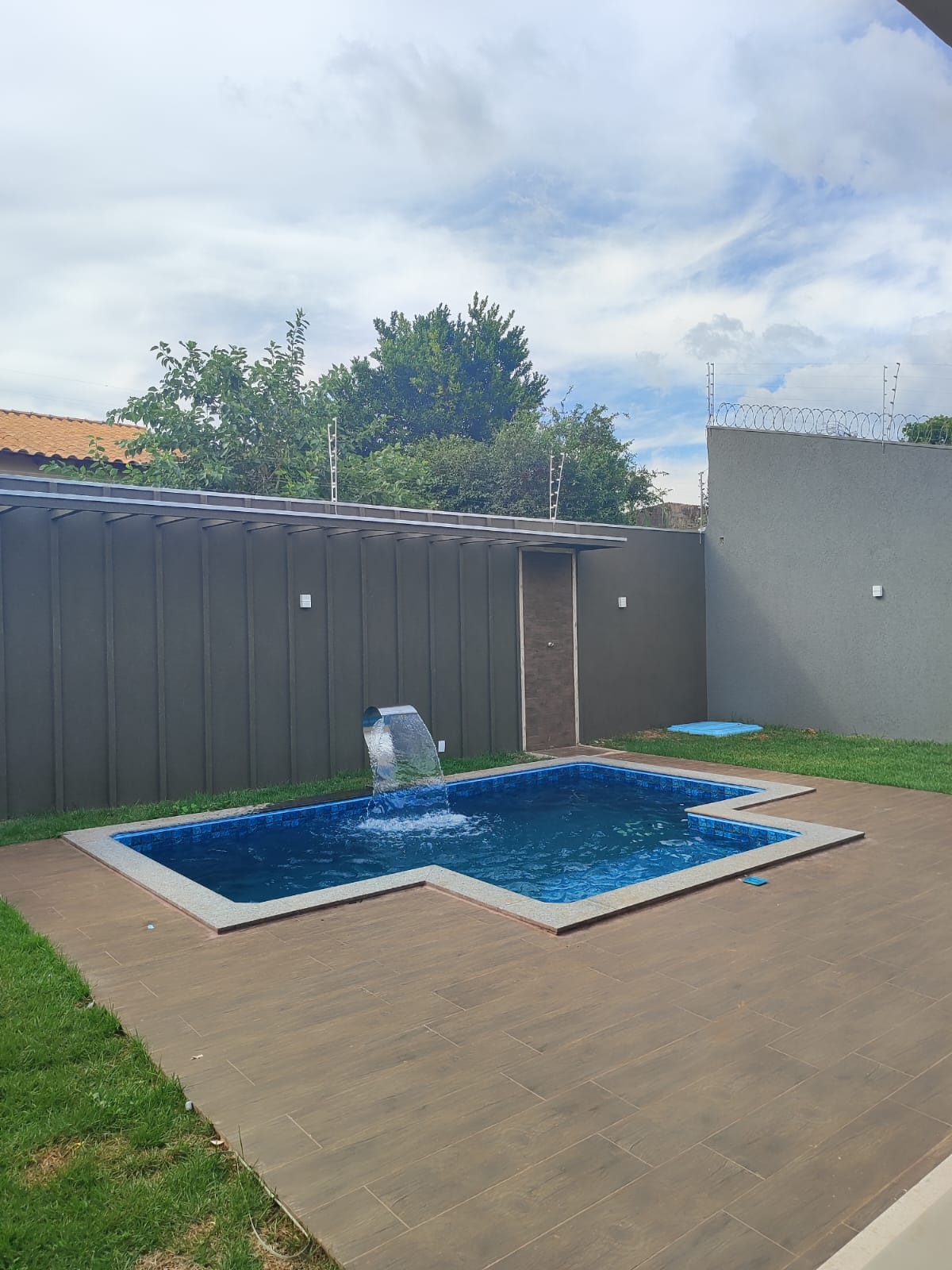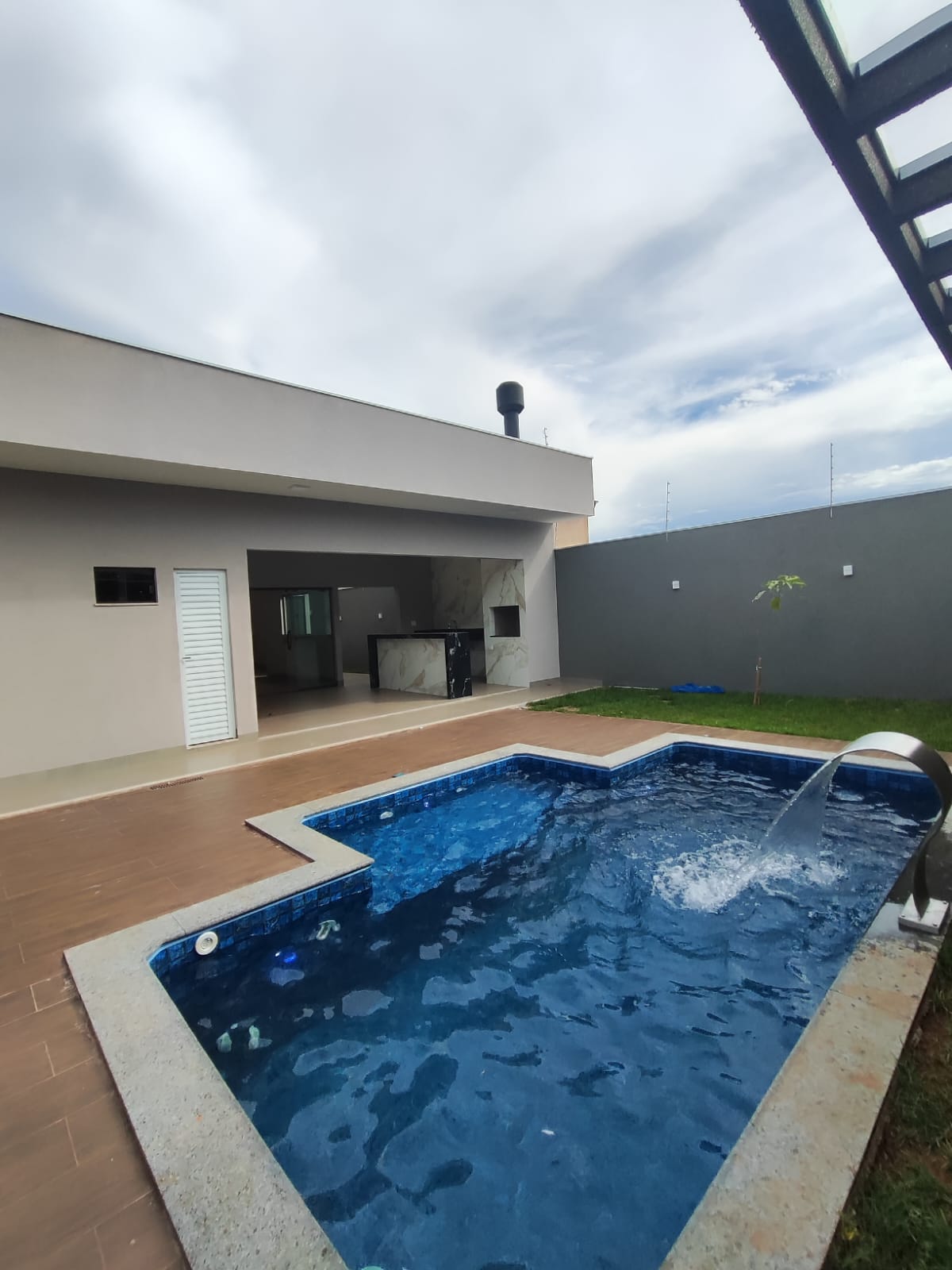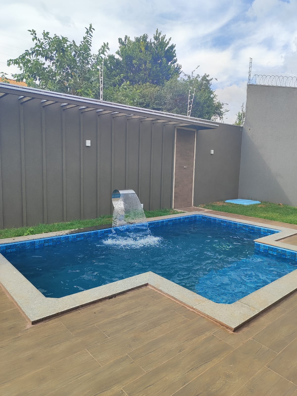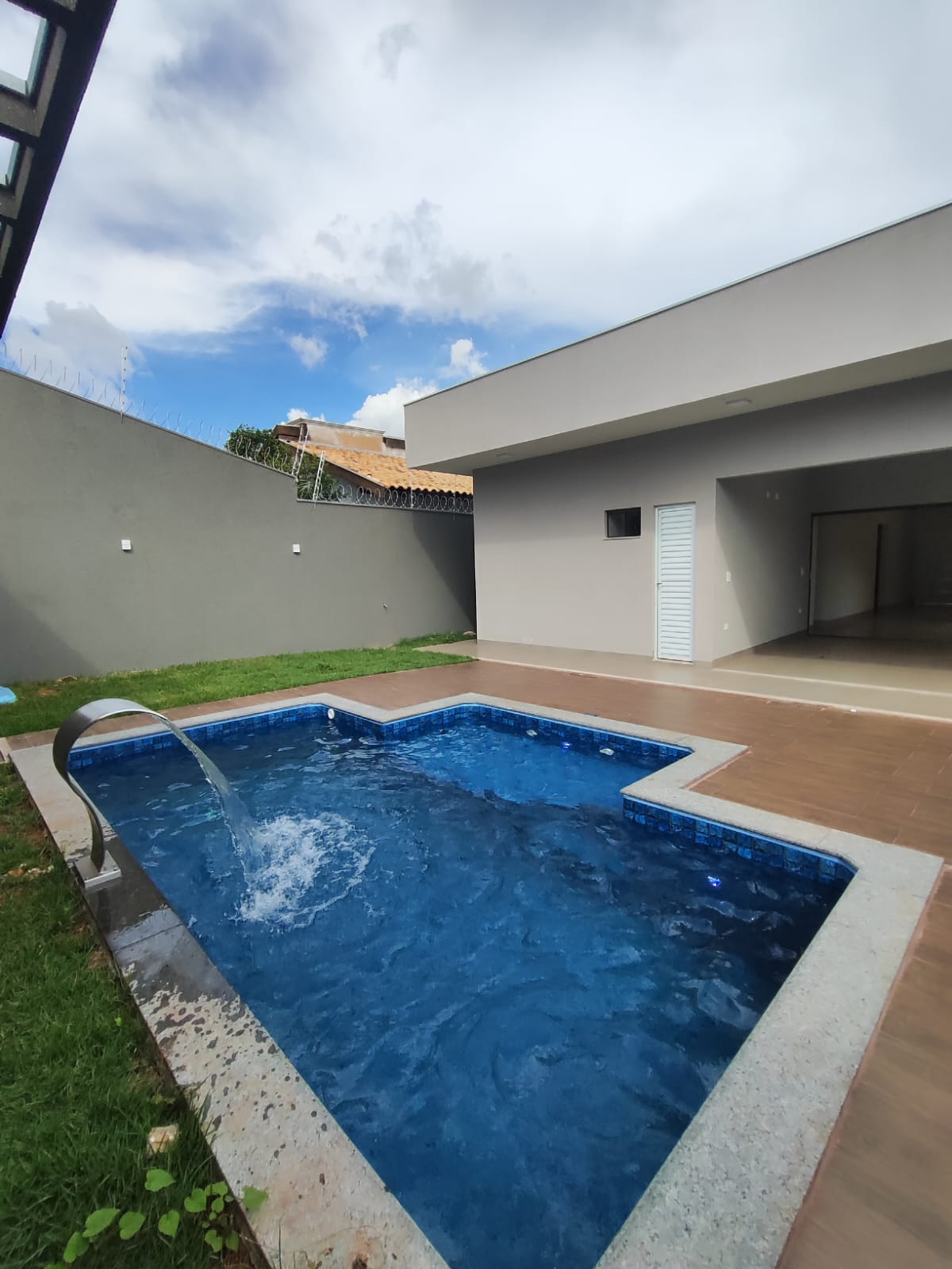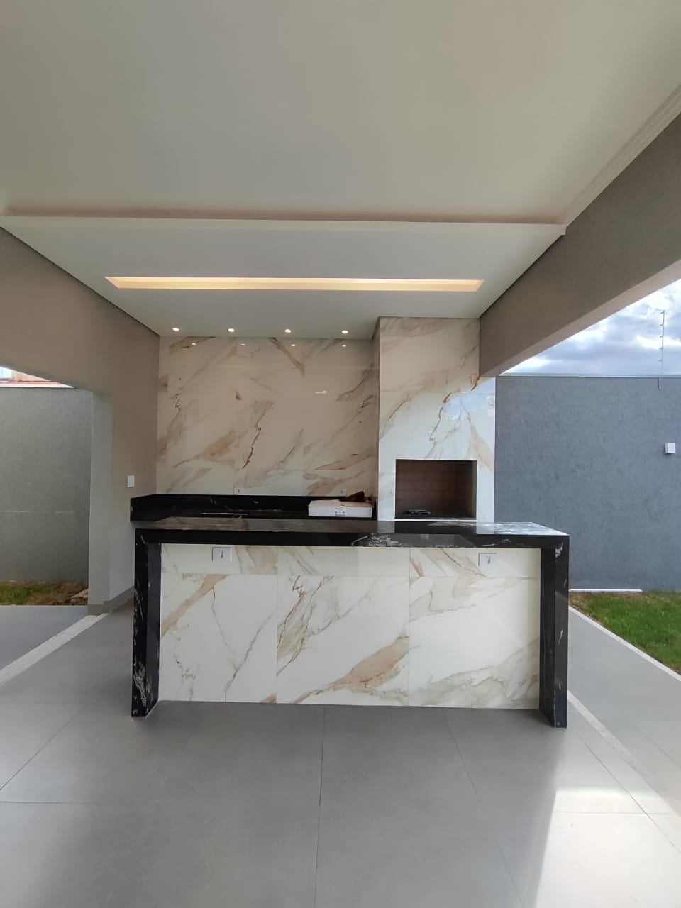 Composta de uma suíte com closet, mais dois quartos, escritório, banheiro social, sala para dois ambientes, paisagismo, área gourmet, bem espaçosa, lavanderia, bancadas de mármore, churrasqueira revestida, imóvel rico em iluminação em LED, lavabo, e uma super piscina aquecida, excelente acabamento.